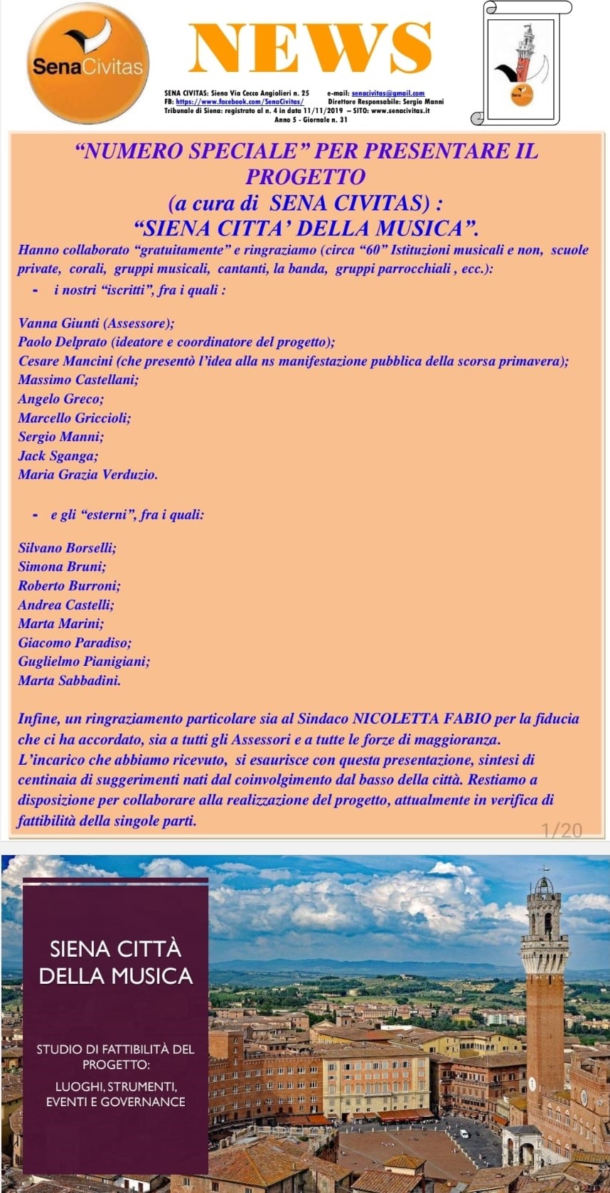 Non è che per caso Area Civica ha fatto un maldestro copia e incolla di quanto Sena Civitas ha già da diversi mesi presentato pubblicamente alla città come frutto del mandato ricevuto dall’Amministrazione Comunale nel settembre dell’anno scorso e concretizzatosi nello studio di fattibilità del Progetto “Siena Città della Musica”.